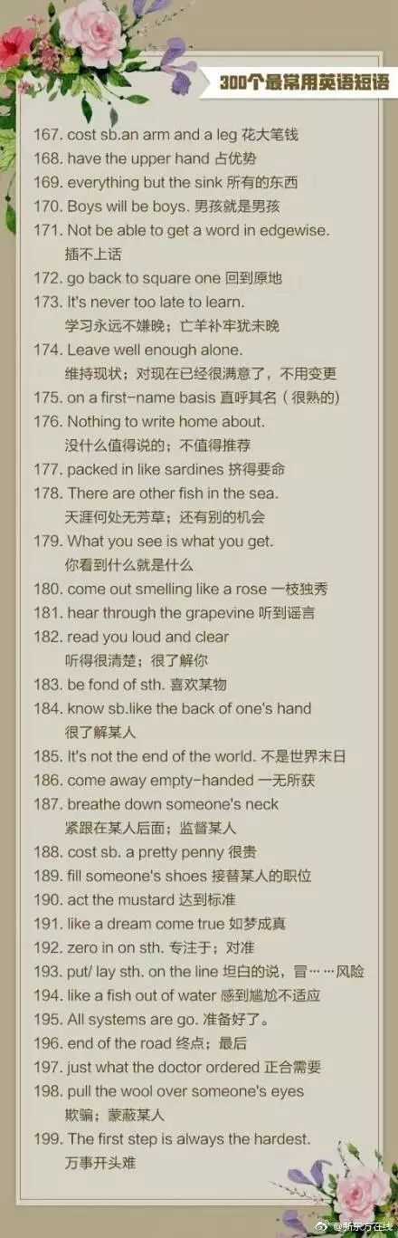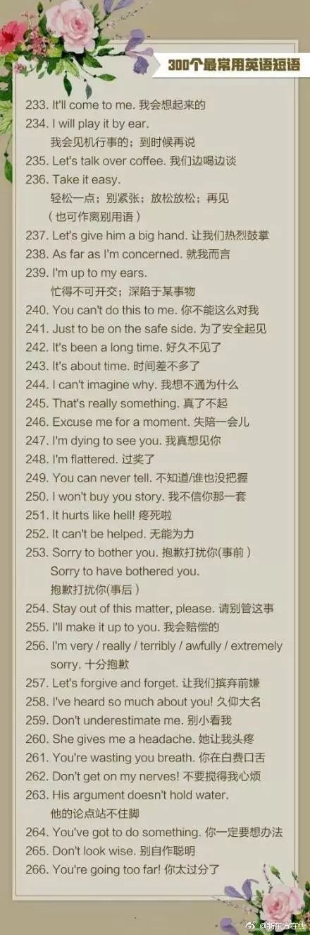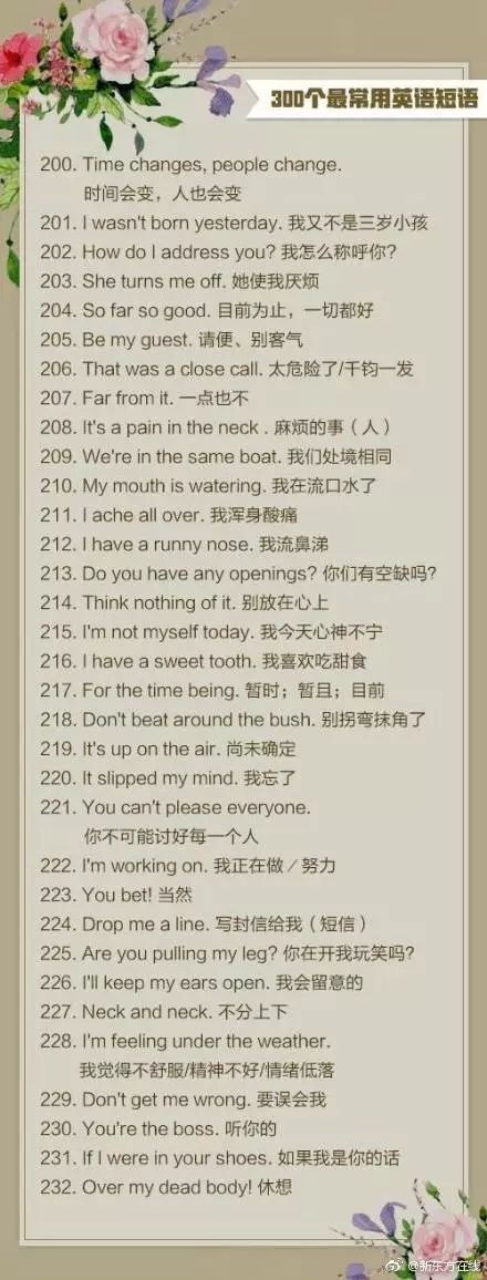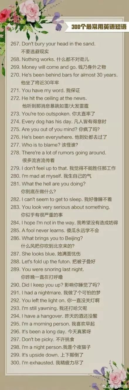 使用频率最高的300个英语口语短句↓↓